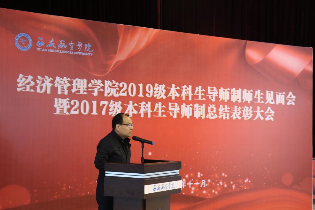 best365网页版登录院长、党总支副书记史亚洲宣读西航经管字[2019]6号《best365网页版登录关于授予陈慧泽等教师“本科生导师制优秀指导教师”称号的决定》。他讲话时分别寄语本科生导师和学生,希望导师们做学生闪光点的点亮人、学生心灵的守护人、学生知识的引路人、创新思维的启迪人;同学们做勤学善问的老实人、积极向上的奋进人、理想信念的践行人、引领时代的创新人。