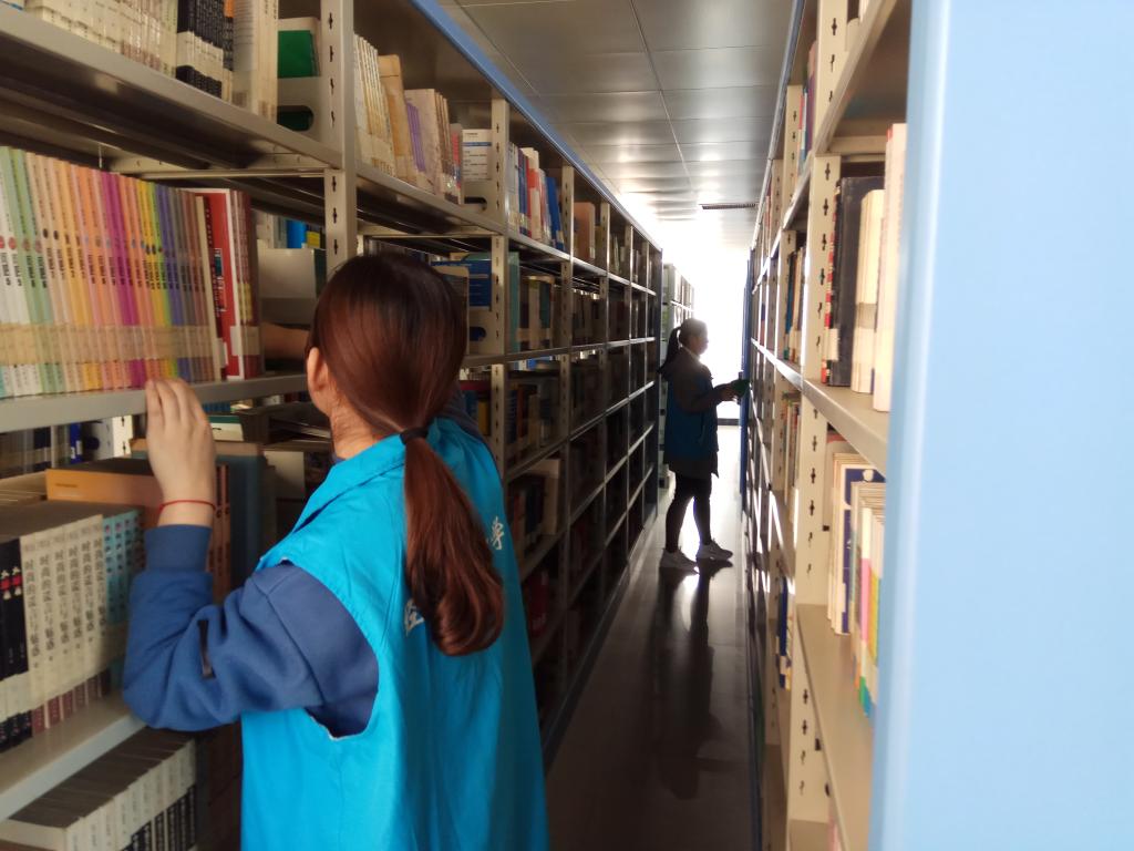当天下午,在志愿者中队队长郭永盼和副队长王宗仁的带领下,参加活动的24名同学分别在图书馆七楼开展清理整洁活动,有的擦拭书架、有的排列书本、有的清洁书柜,分工明确、高效快捷地完成了此次志愿服务活动。