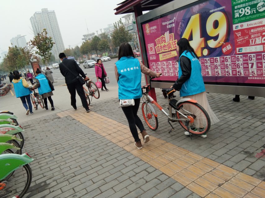 活动开始,志愿者们对社区内的垃圾、树叶进行清扫,对沿途一些广告牌上的小广告进行清理,并粘贴上公益宣传海报。随后,志愿者一行人来到社区周边共享单车的摆放点,对一些乱停乱放的自行车进行整理摆放。他们在清理的过程中互相帮忙、团结协作,体验志愿服务的乐趣,活动如火如荼的进行,给沿途街道留下了文明的印记。到此,志愿活动圆满结束。