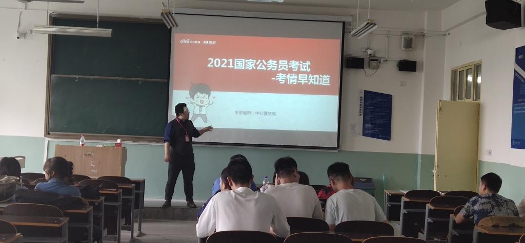 2020年9月29日下午14:30分,best365网页版登录于沣惠校区主教学楼D0602教室为2021届毕业生举办了公务员考试指导讲座。讲座邀请到了陕西中公教育资深讲师曹文昭老师,在时长一个半小时的讲座中,讲师耐心,学生专心,一问一答,现场气氛热烈。