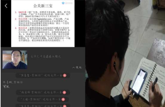 授课过程热情高,教学秩序保质量。在授课的过程中,授课教师积极热情地向同学们传授课程内容,开展线上辅导、线上讨论、线上答疑,部分授课教师在授课的过程中形成了“腾讯课堂+雨课堂+微信学习群多平台联动”的授课模式,切实做好疫情防控期间学生的学习指导。辅导员班主任线上听课,做好线上考勤和心理疏导,保证线上教学秩序的有序运行。