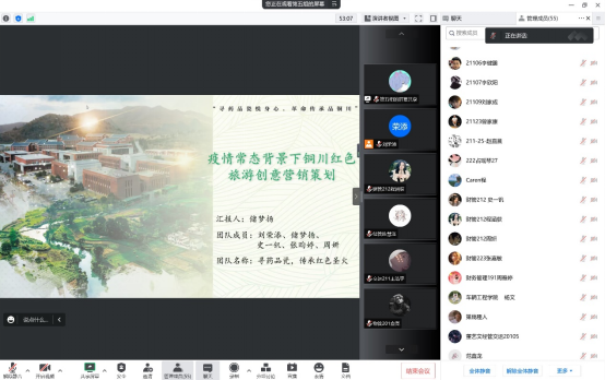 9月15日,由中共陕西省教育工委主办,西北政法大学承办,以“沿着总书记足迹”为主题的陕西红色旅游创意策划大赛校赛选拔赛圆满落幕。该比赛共有三十八支团队,一百多名学生参加,由best365网页版登录张阳、陈慧泽、王雨薇三位老师作为评委在腾讯会议进行汇报展示。比赛中各支队伍从推广策划方案、推广效果等方面针对案例地的红色旅游资源的开发现状、宣传推广、文创研发、资源整合等进行路演。比赛充分体现了各支队伍的专业素养、创新思维和团队协作,评委们一致给予了肯定和鼓励。