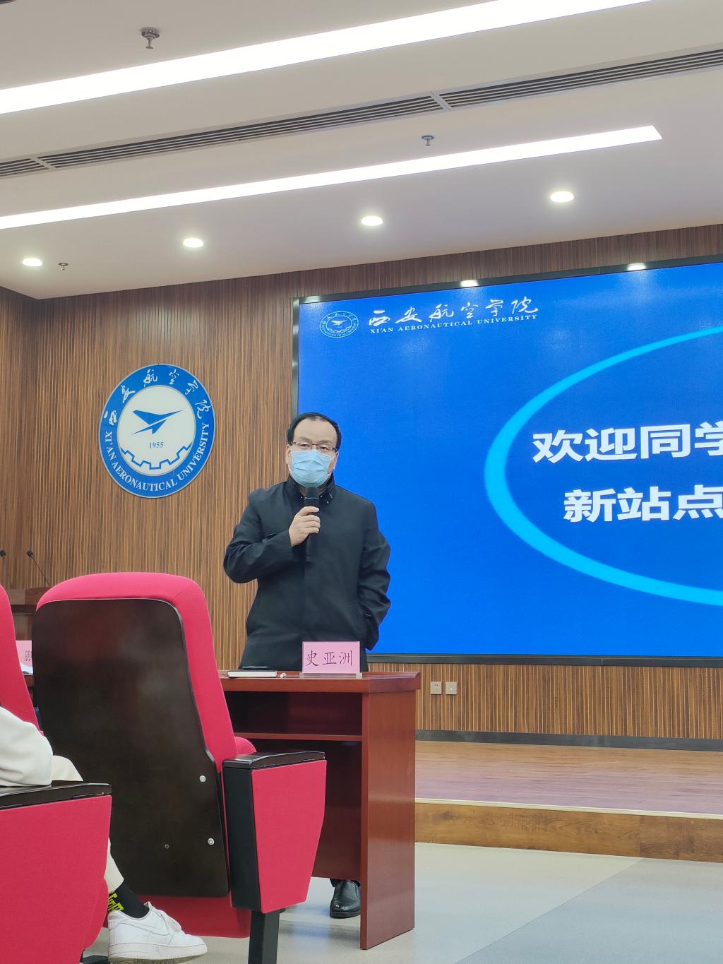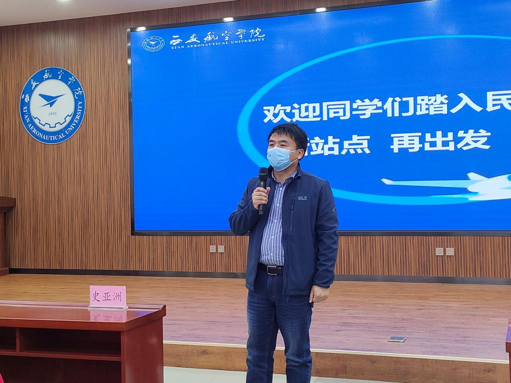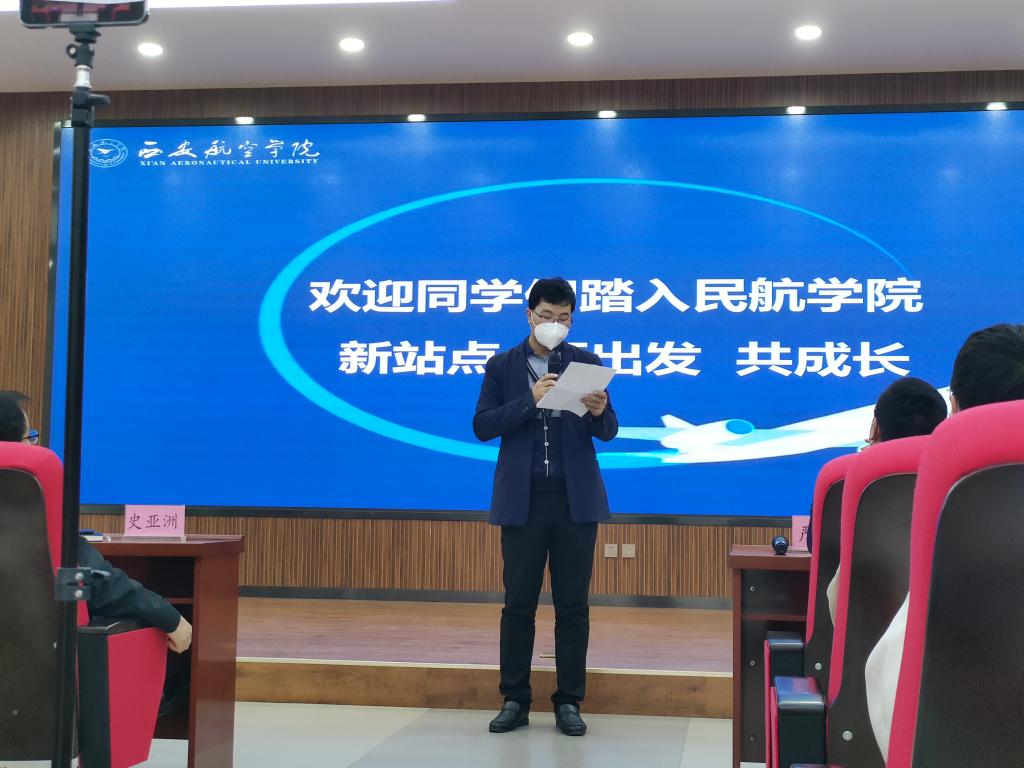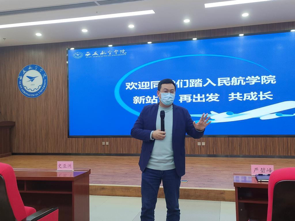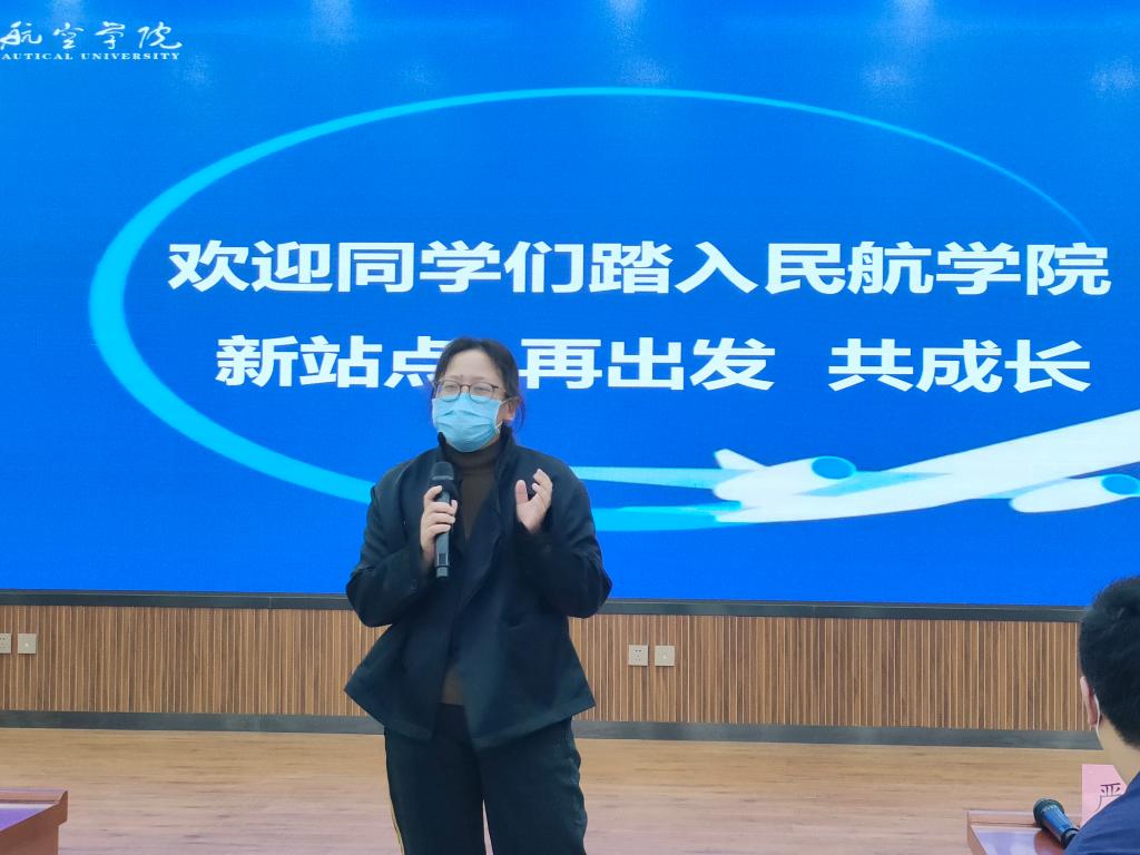 民航学院党总支副书记裴鑫向同学们介绍了辅导员老师的分工,希望和同学们能够双向奔赴,一起创造有温度、有角度、有态度的民航学院,和同学们一起构建持续温暖、团结向上、奋进向前的家庭氛围,和同学们相互陪伴,一起成长,在民航学院大集体中遇到更好的自己。