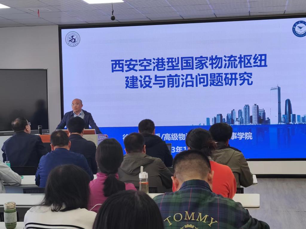 在讲座过程中徐德洪教授介绍了西安空港枢纽的建设发展情况,结合自身科研工作分析了枢纽片区及其运营主体、对国家战略的支撑保障作用等相关问题。并就由此引申而出的航空物流发展的前沿问题做出了精彩的阐述。徐教授还结合自身科研、教学的经验,就如何建设好一个一流专业,应用型高校教师面临社会经济发展的考验如何成长为一名全方面发展的“应用型教师”等问题,进行了深入又生动的讲解。最后徐教授就现场师生提出的问题做了坦诚细致的交流。