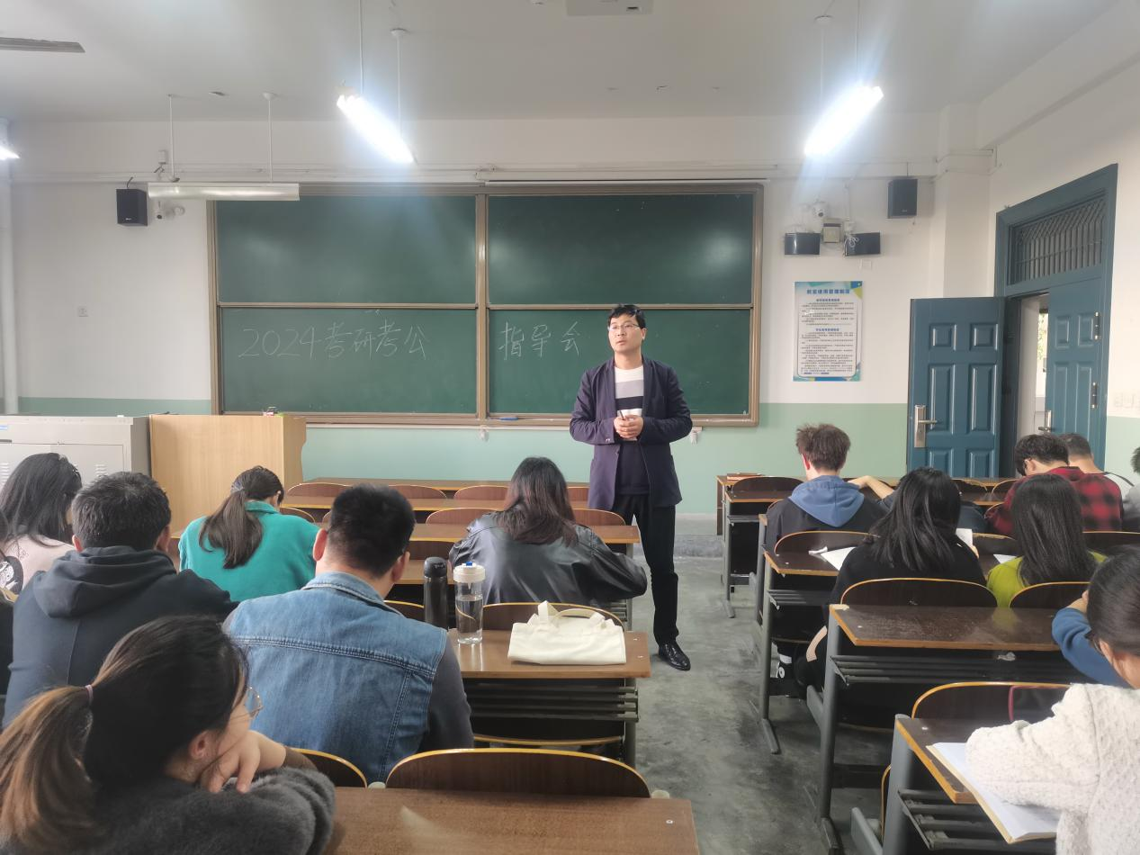 张鹏结合自己考研考博经历,从备战英语、数学、政治及专业课四个角度对考研学生做了讲解和指导,结合10多年前考国安局经历,介绍了考公考编的心得体会,供同学们有选择性的参考和借鉴。他指出目前既要学好大四专业知识,也要脚踏实地认真复习,他希望同学们都能考出优异成绩,迎接更加灿烂的未来。