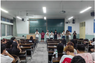 在熟悉歌词后,活动负责人邀请了几组同学上台进行分组演唱。嘹亮的歌声在教室里回荡,“我们是五月的花海,用青春拥抱时代”这两句唱出了我院学子如花海般充满生机与活力,展现了我们作为青年群体的青春朝力和无限潜力;“壮丽的事业,激励着我们继往开来”这两句唱出了我院学子对国家事业的高度认同和坚定追随,激励着我们传承先辈的精神和意志,勇敢地接过历史接力棒。