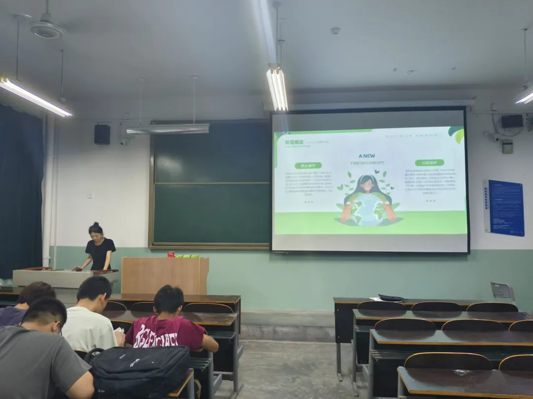 此次宣讲活动由宣讲团的周怡同学担任主讲人。她采用图文讲解、实例分析和互动问答等形式,生动而详细地介绍了环境问题的严重性、环保的重要性和紧迫性。周怡同学还向同学们普及了垃圾分类、节能减排等日常生活中的环保知识和技巧,旨在引导大家将环保理念融入日常生活。